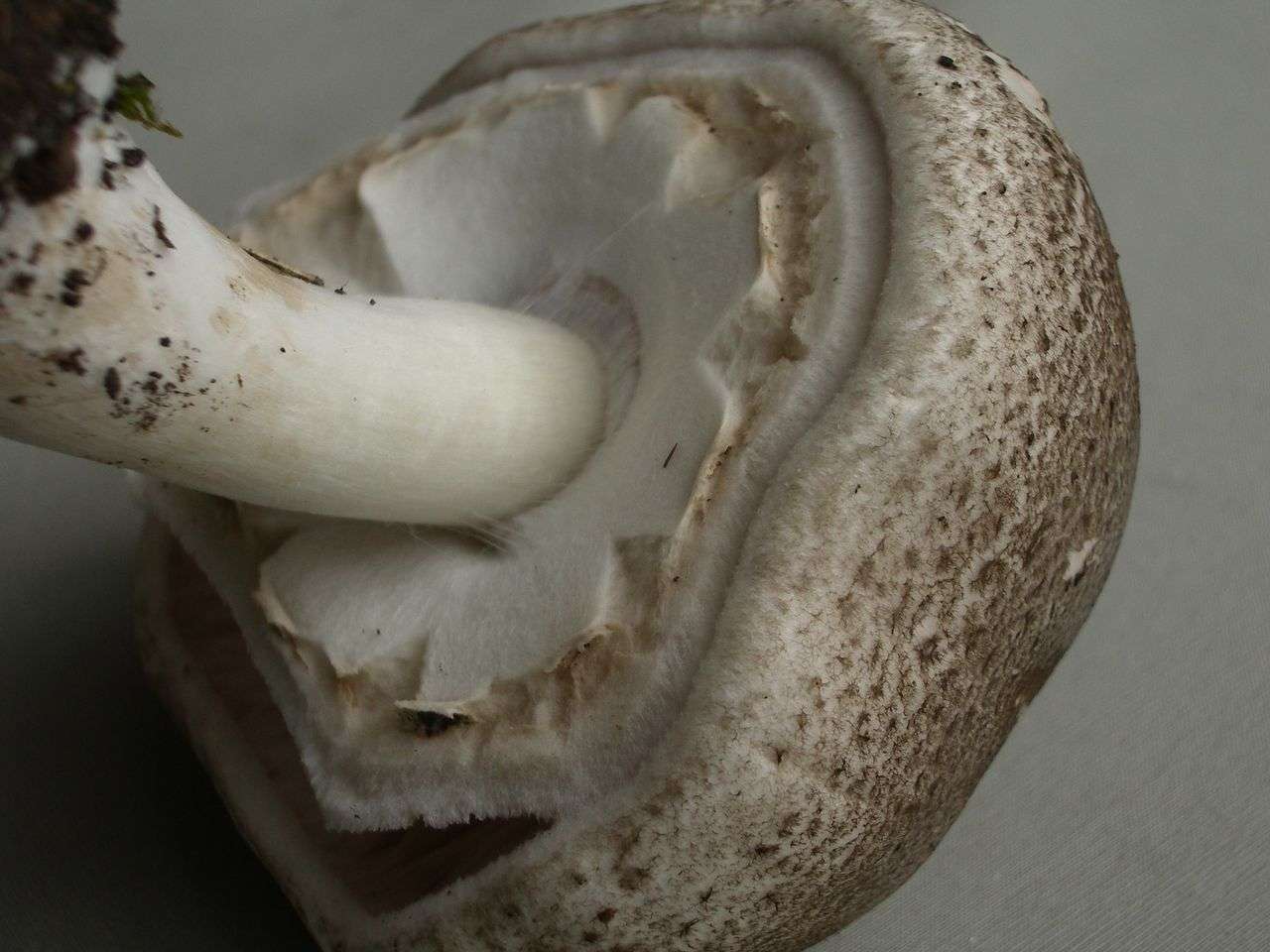 Link to: Agaricus moellerianus </br> Flockenstieliger Wiesen-Champignon, Kleinsporiger Wiesen-Champignon