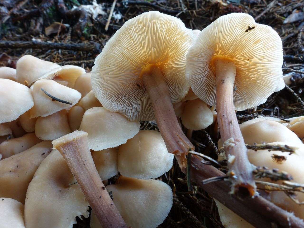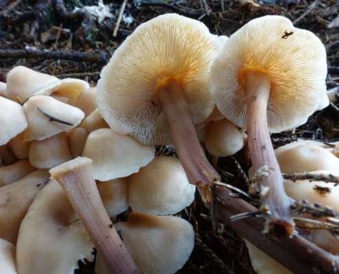 Syn.: Collybia confluens, Gymnopus confluens, Marasmiellus confluens, Marasmius confluens